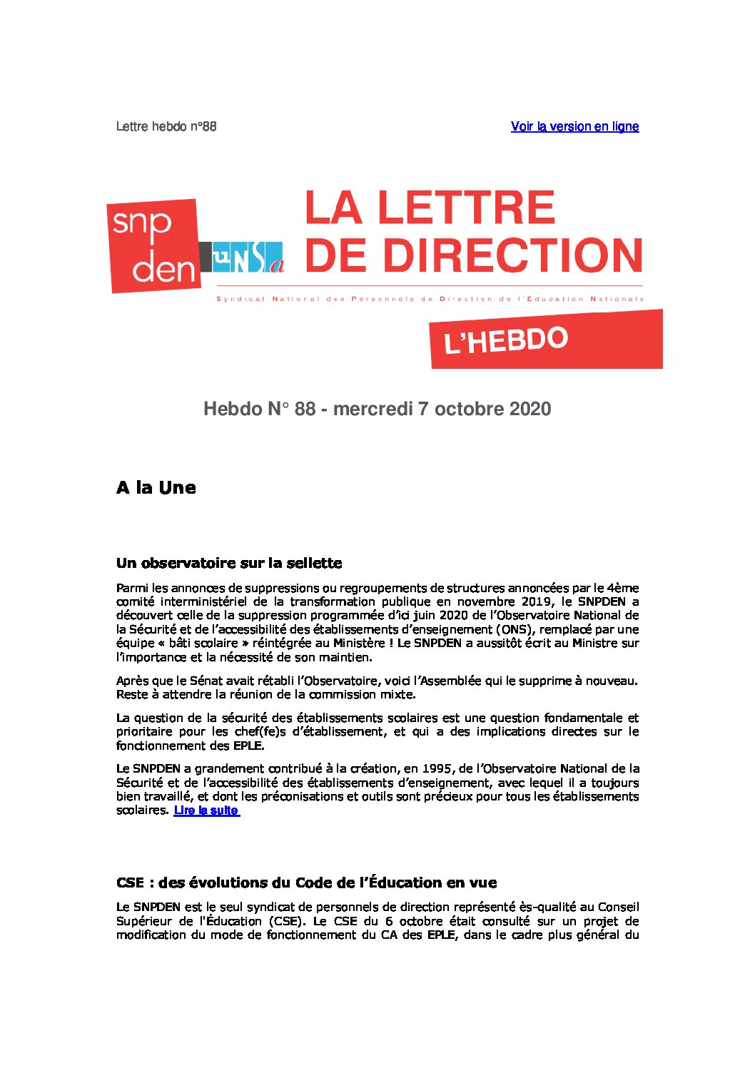 AccueilDocumentsActu Perdirs/Lettre HebdoLettre Hebdo n° 88 Lettre Hebdo n° 88 Publié le 7 octobre 2020 à 15:23 par Joëlle JONNEAUX − Mis à jour le 14 octobre 2020 à 14:56