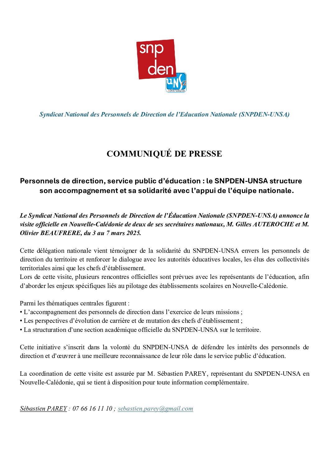 Visite syndicale du SNPDEN-UNSA en Nouvelle-Calédonie | 18.02.2025